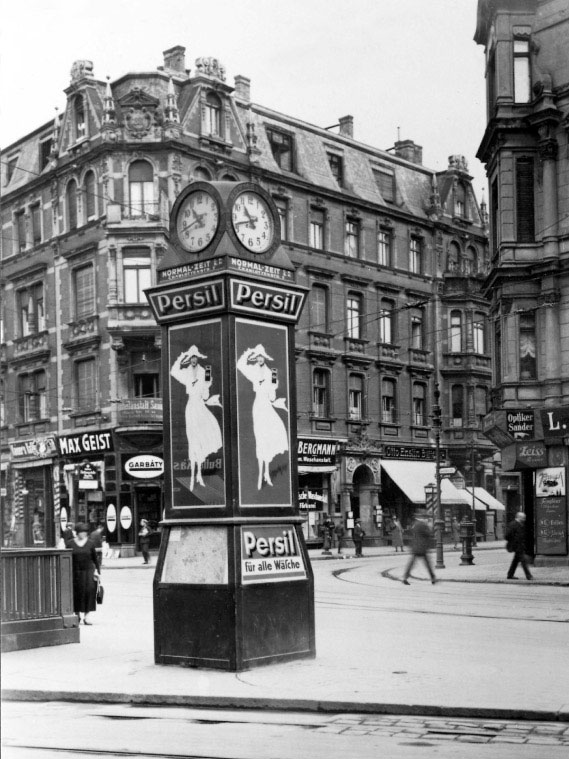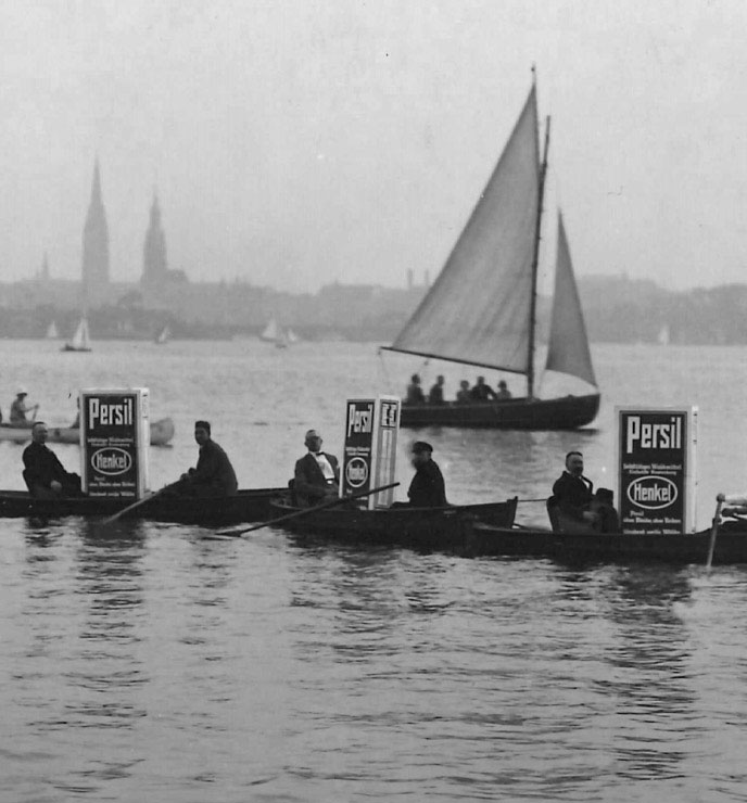 Right from the start, Fritz Henkel pursued a powerful advertising strategy to draw consumer attention to his products. However, the cities were already full of advertising at the beginning of the 20th century, so a way had to be found to stand out from the competition. In addition to classic forms of advertising, such as posters or newspaper ads, Fritz Henkel diversified the ad portfolio. Whether with illuminated signs, films, or Persil clocks: Henkel always made use of novel advertising methods with a sure sense of their impact. The campaigns were further supported by the so-called traveling “instructresses” (demonstrators) and the traveling salesmen who promoted the company’s products in the field.