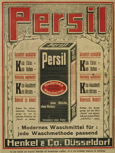 Henkel’s Thee (tea), however, was newly included in the product offering in 1887. At the time tea was sold in Germany loose only, forfeiting its flavor fast when stored in poor conditions. Henkel’s innovation featured decorative, aroma protecting tin boxes. The tea business ended in 1913, when Persil became Henkel’s sales driver.
